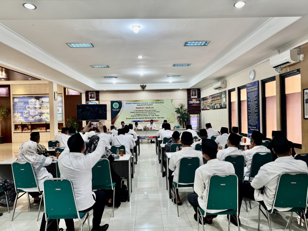KUDUS – Dewan Pimpinan Majelis Ulama Indonesia (MUI) Kabupaten Kudus menyelenggarakan Rapat Kerja pada Selasa, 30 September 2025, sebagai bagian dari komitmen untuk meningkatkan peran dan fungsi kelembagaannya di tengah masyarakat. Pertemuan yang berlangsung dari pukul 14.00 hingga 17.30 WIB ini secara khusus menghadirkan Ketua, Sekretaris, Bendahara MUI Kecamatan, serta Kepala Kantor Urusan Agama (KUA) Kecamatan se-Kabupaten Kudus, guna menyelaraskan evaluasi dan perencanaan program kerja komisi-komisi dan MUI kecamatan.
